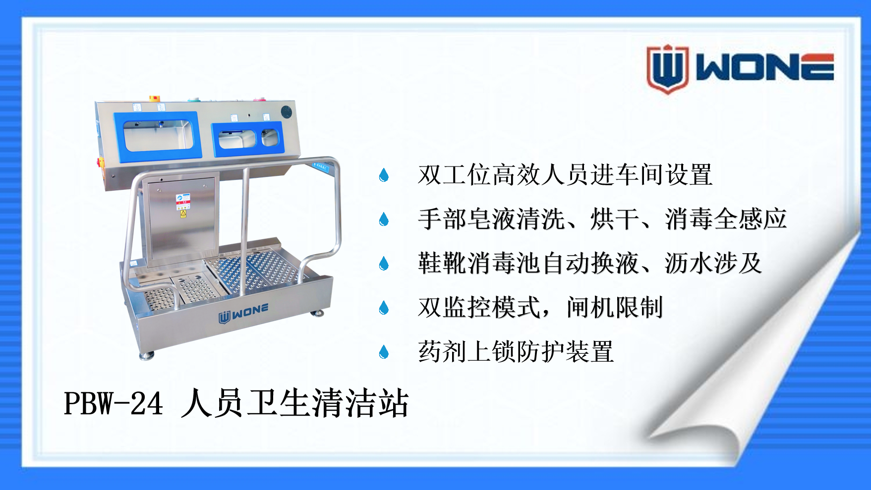 人员卫生清洁站 PBW-24:感应洗手、手烘干、手消毒、鞋靴消毒四中功能。
